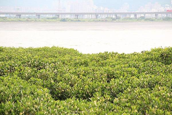 沿著筆直的車道,好像沒有盡頭似的,一點兒也瞧不見轉彎的弧線,出現的盡是兩側頗具俐落美感的護欄與路燈桿;河面上,偶爾出現魚跳,岸邊潮間帶到處可看到成長豐盛的紅樹林和蘆葦,散發著自然原野的氣息。