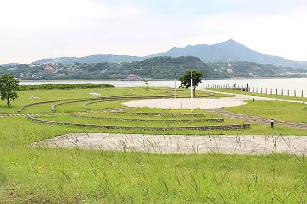 堤防下坡上,沿途也闢建出石板路與木棧道,輕鬆就能走到觀賞基隆河與淡水河交會及入海的關景平台。放眼望去,是270度的壯闊河景,朝右望去有香火鼎盛的關渡宮和橫跨淡水河的關渡大橋迎接,遙遠卻醒目。