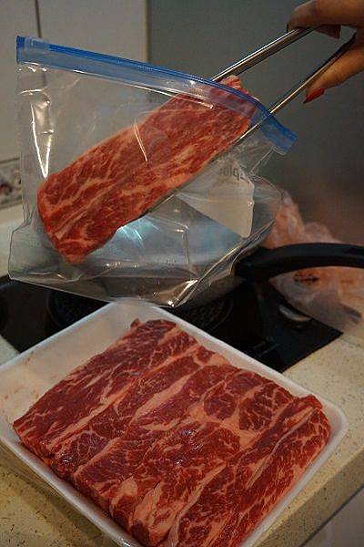 把買好的牛小排依序裝進食物保鮮袋裡,購買食物保鮮袋時也最好先檢查是否能夠耐高溫,畢竟這是一分錢一分貨的物品,如果可以的話,還是選擇大品牌的會比較安心一點。