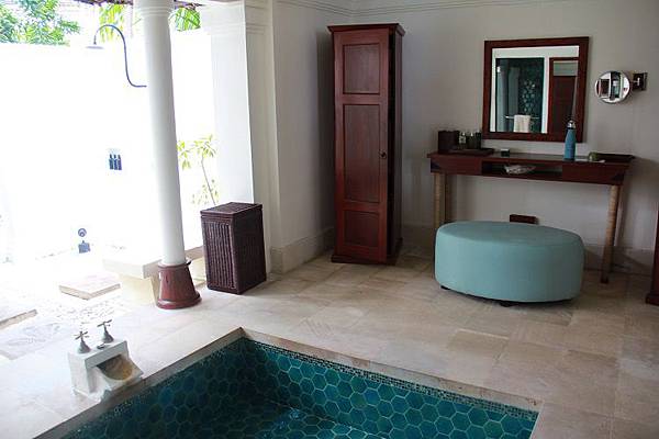 這裡就是更衣和按摩完之後的盥洗空間,整個面積比起Landaa Firaavaru島的SPA屋子要大了不少,還有增設戶外淋浴的區域。