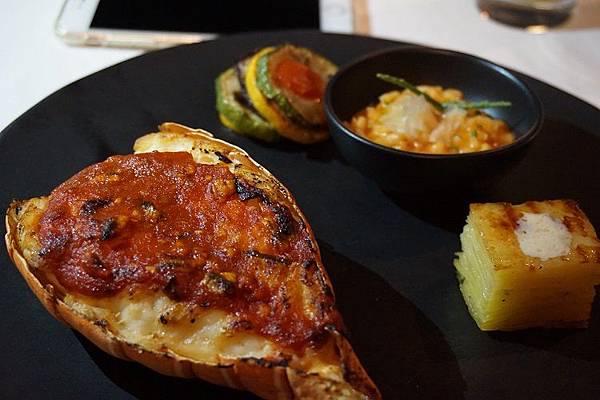 Blu餐廳在龍蝦之夜的菜色內容當然是很豐富,主要是以六道式的套餐內容呈現,上面的照片就是除了主菜以外的其餘菜色,當然也包括甜點。
