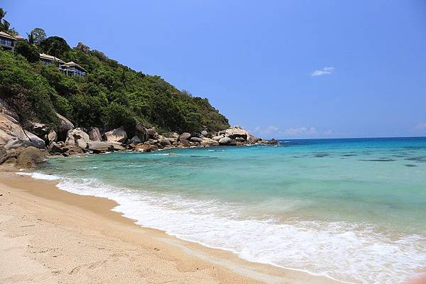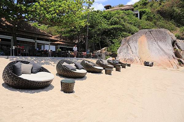 出發前就有聽說過蘇梅島上的幾個知名公共沙灘上,三不五時就會有小販來兜售產品,而位在悦榕庄最下方的這座沙灘是屬於私人的,意思就是除了悦榕庄的住客以外,不會再有其他不速之客跑進來這片沙灘。