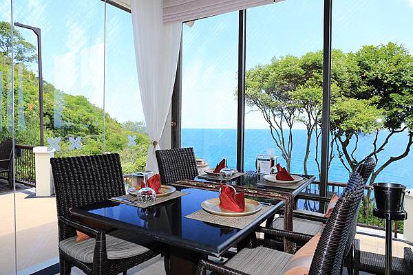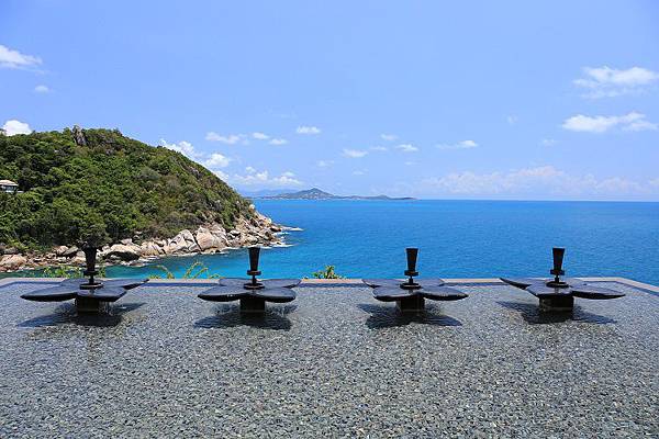 蘇梅島悦榕庄主打的就屬無敵景色,別墅有多種房型可以選擇,從房內看出去的樣子依照房型都有所不同,不過共通點是全都位在山坡上,越高等的房型,佔據的地理位置和視野就越好。光是看到這樣的風景,就不想離開度假村了。