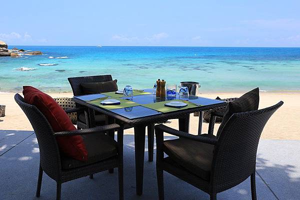 Sands 餐廳的戶外座位區也有不少位子,最適合前來的時間點是晚餐時段,精心營造的燈光和氣氛,搭配上赤腳踩在細軟沙灘,讓這裡一舉成為情侶們的最愛。