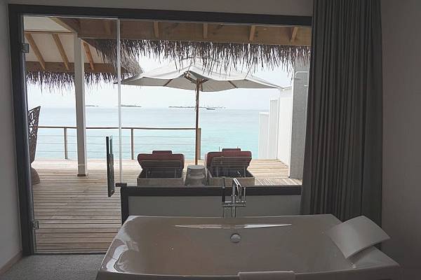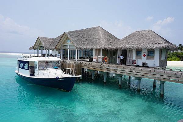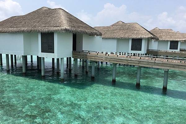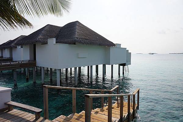 Seaside Finolhu(Finolhu Baa Atoll) 的水上屋別墅外型算是結合了傳統與現代,屋頂是用茅草,牆身則是用很適合海島的簡潔純白色增添美感。