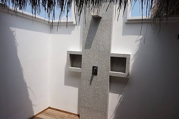 基本的廁所與淋浴間在拉開黑色門的右手邊,戶外還有一處露天的淋浴空間,可以說是該有的都會有,光從別墅的外觀上真的看不出來裡面有這麼大!!![]()