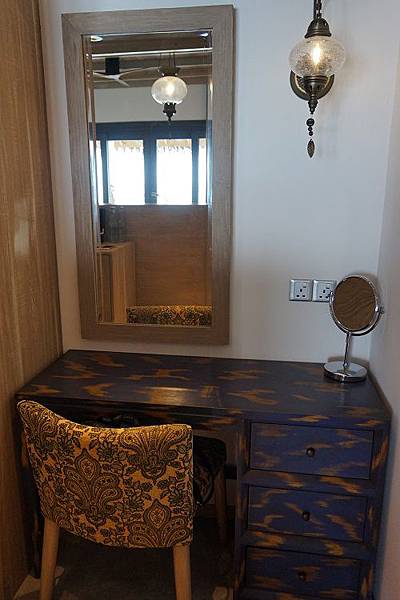 衣櫃旁邊也有一張很吸睛的桌椅,依舊有著很強烈的復古情調,這裡作為女孩們化妝或吹頭髮的地方是再適合不過了。