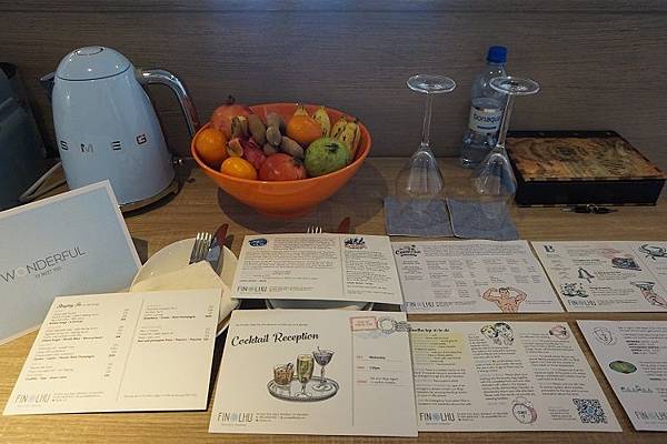島上所有的資訊與活動項目表單都在一進門後的這張桌子上,對於第一次來到馬爾地夫的人務必要去翻閱一下裡面的內容,了解一下整個Seaside Finolhu(Finolhu Baa Atoll) 島上的概況。