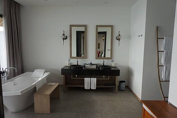 浴室雖然不像臥室有用上許多其他的顏色點綴,空間表現上依舊讓人相當放鬆,就是那種走進來後玩了一天的疲倦都可以獲得釋放的感覺。