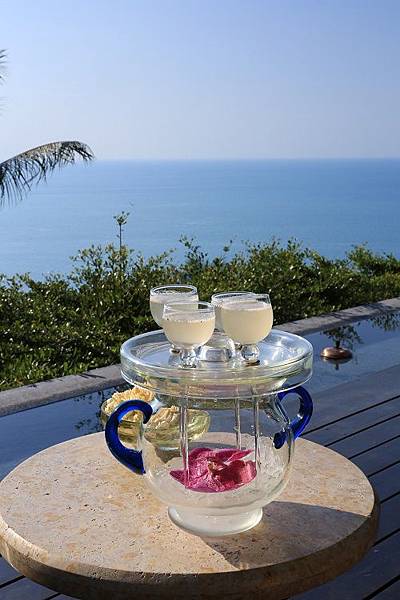 喝飲品的同時,眼前還能夠毫無遮蔽地將Laem Yai海灣與熱帶綠色植物景觀盡收眼底,真的是徹底改變了我對於 Check in 地點的刻板印象,這一開場的景色真是很令人震撼。