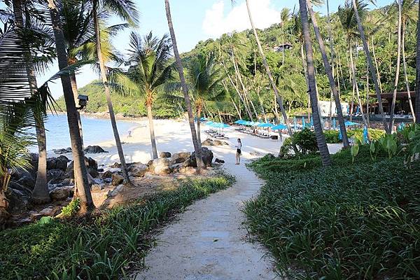 在四季酒店裡可活動的區域範圍可以說是相當廣大,撥通電話叫一台 Buggy 來載人前往各處是再普通不過的事,後來上網查了一下才知道它占地約17公頃,更重要的是除了海邊的沙灘以外,沿途可以說是綠意密布,一切看起來都是如此渾然天成,走進來真的就不太想離開了。