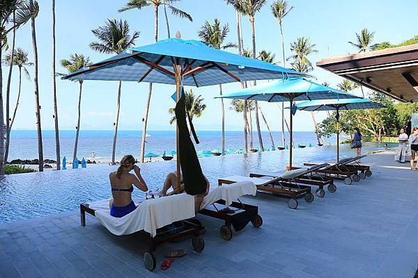 奢侈的事還不僅於此,因為飯店的主泳池就位在沙灘正後方,但是地勢又並非齊平反而帶有一些高度,比起沙灘,更有不少旅客喜愛待在這座無邊際泳池旁休憩。一間名為CocoRum也緊鄰在這泳池旁邊,此時點些小吃或飲品蓁是再適合不過的事了。