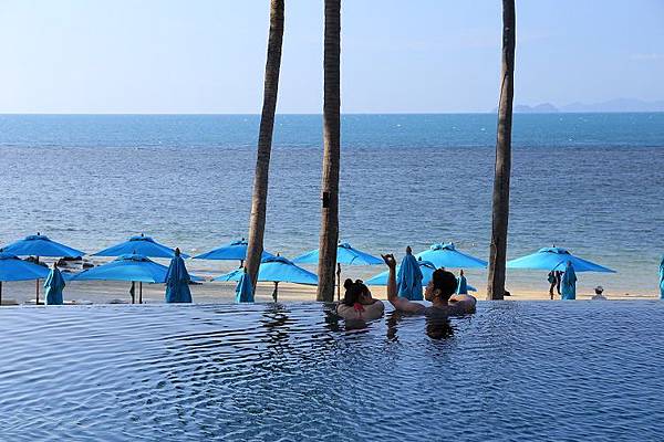 其實看到這張照片,就曉得泳池為什麼要刻意與前方的沙灘形成有高低落差,只要抓好拍照角度,泳池就能夠與前方的大海完全形成一體,形成真正名副其實的無邊際。