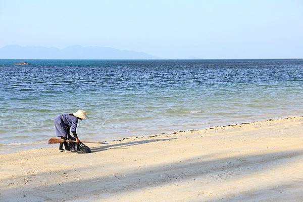 這片沙灘會如此潔淨的緣故,正是因為不如就會有清潔人員來進行掃落葉以及清理小垃圾的淨灘動作,或許有人說維持自然的面貌不是很好嗎?不過換個角度想想,假如看到沙灘四周都是落葉,下水的興致應該也會減少許多