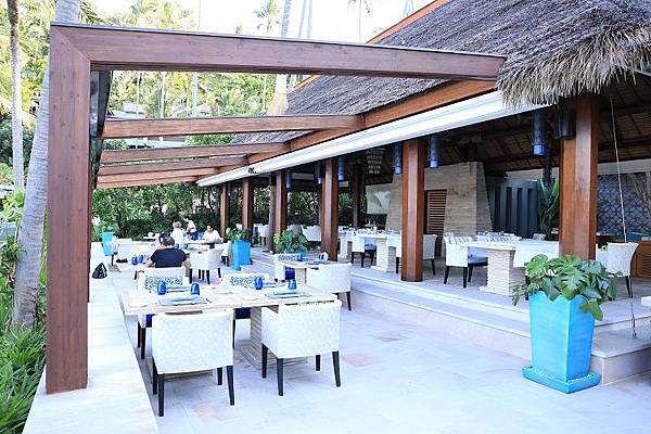 因為地理位置以及周圍依山環抱的緣故,令這裡的海灘儼然成為住客專屬,即使整片面積不大,卻等於間接過濾掉不少閒雜人等。而且只需要找上一張適合自己的躺椅,坐上去後,就會有服務人員前來服侍,簡直就是住在自己別墅才有的尊貴服務。如果有特別的餐廳主題之夜或活動,也會在此舉辦。