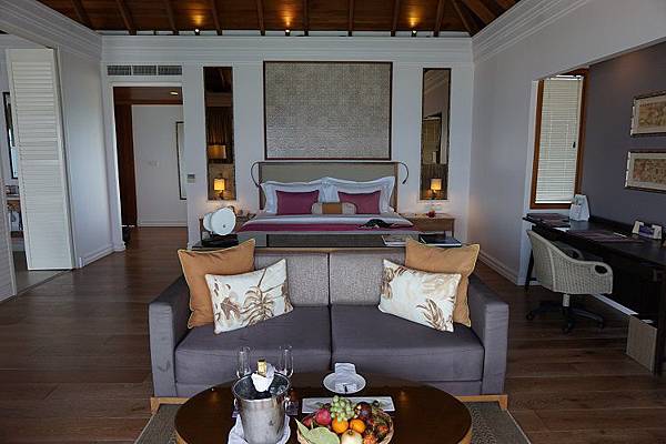 出入口比起 Ocean Water Villa with Pool 也要隱蔽許多,在木棧道四周的天然綠意為生活帶來了一份隱私感,只不過對我來說,Ocean Water Villa with Pool 的那種開闊感與周遭的海水顏色,還是較為深得我心。